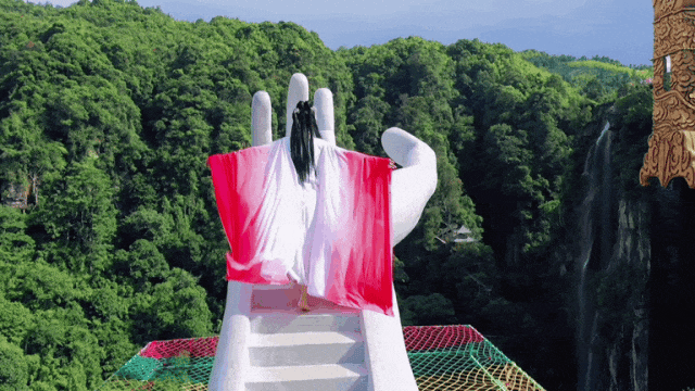 游客可在此手持旗帜,化身新晋巡山小旋风