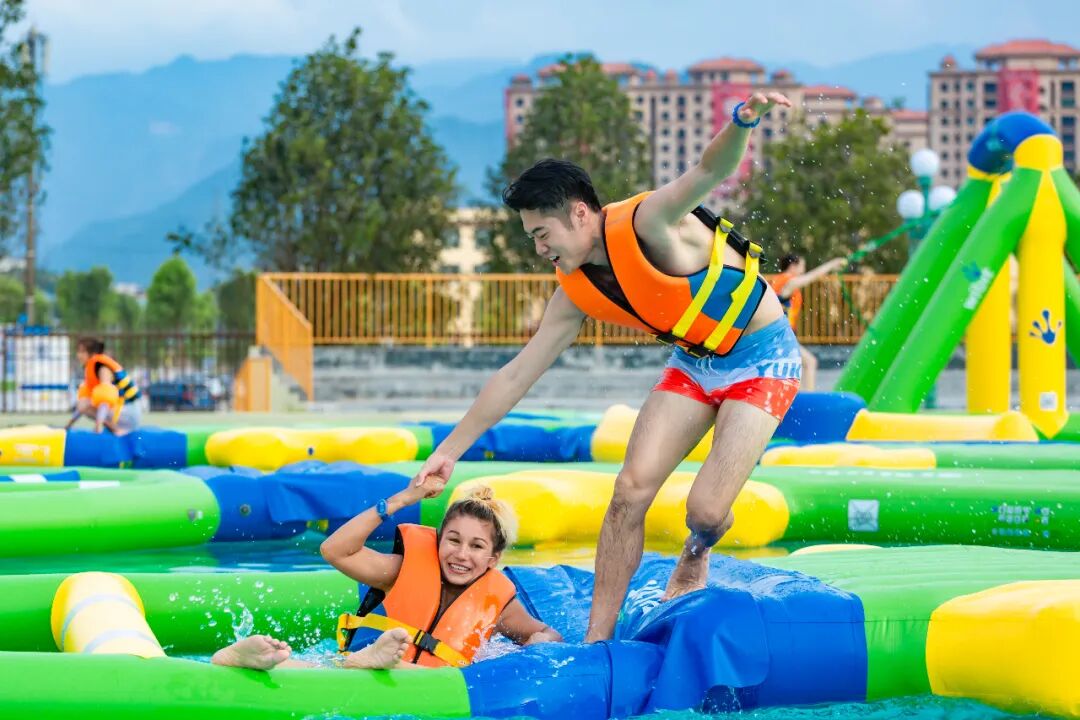 内含水上秋千、水上滑板水上平衡木、双向滑梯贝壳山、跨栏等20多种水上项目是时候来挑战一下自己的平衡力啦!