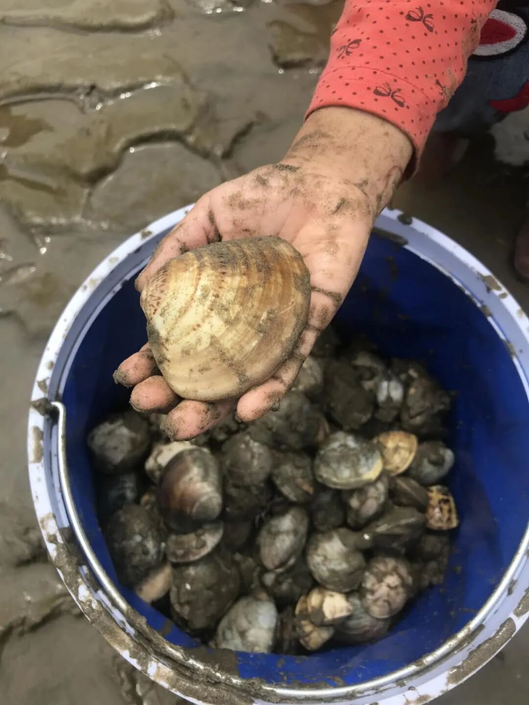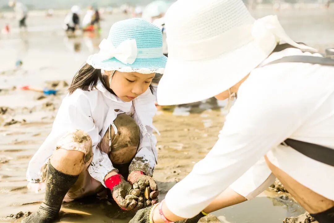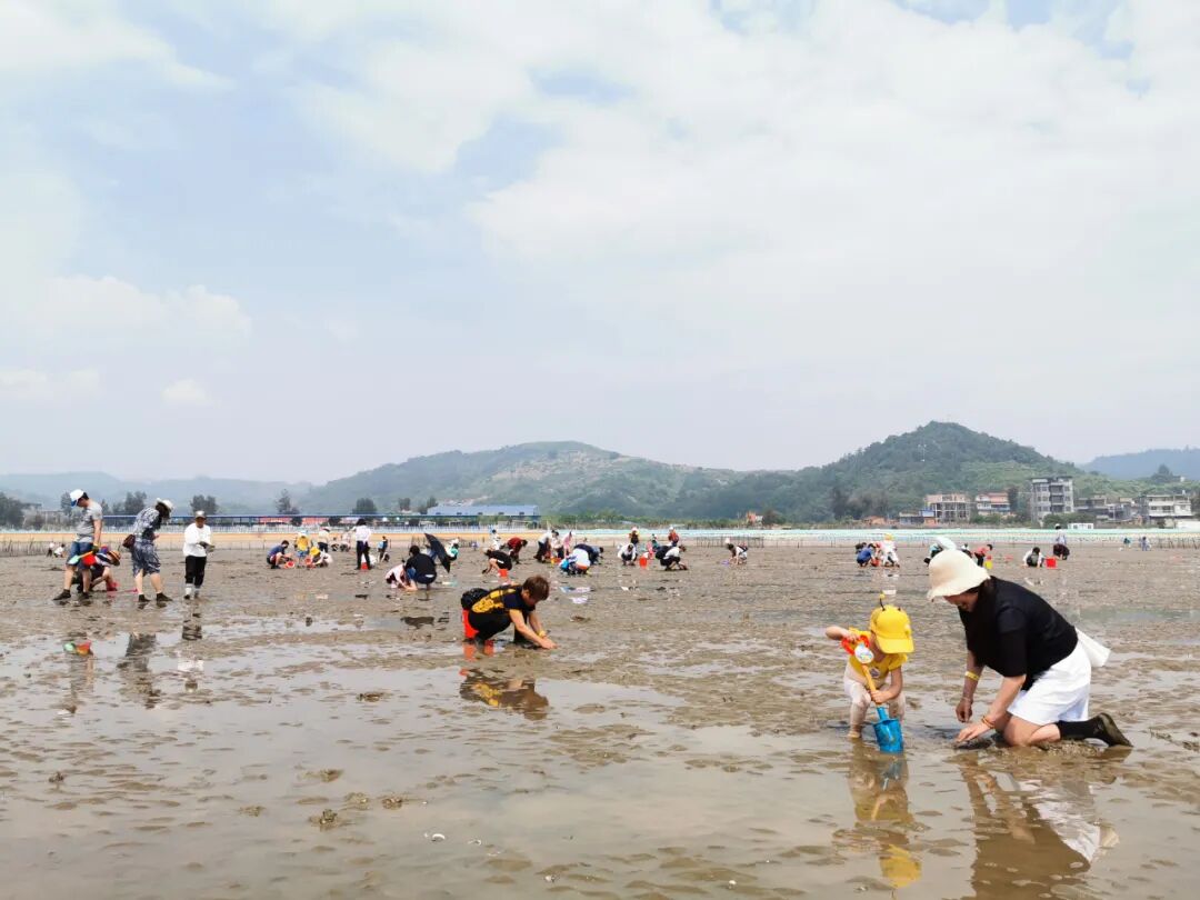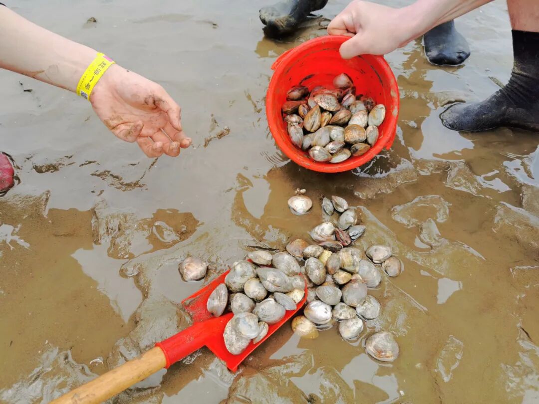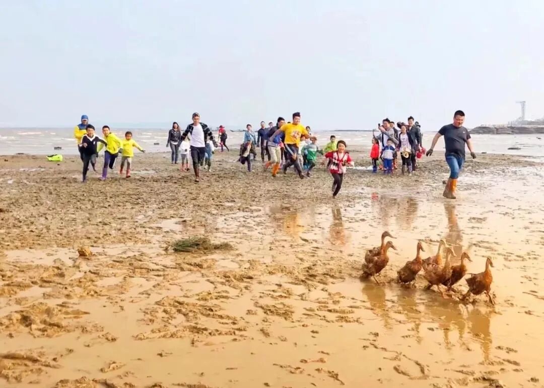 滩涂赶海(摸螺拾贝抓螃蟹)、花蛤美食、踏浪捕鱼、海上捉鸭、